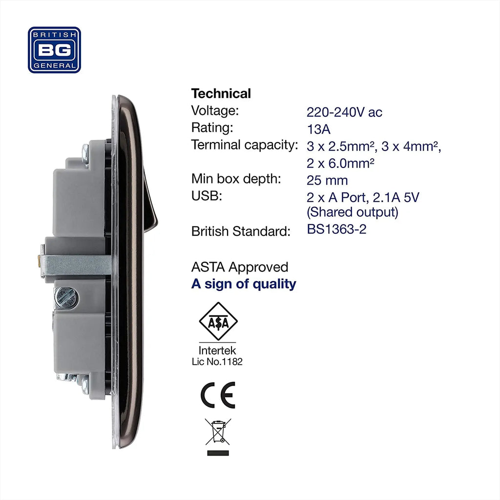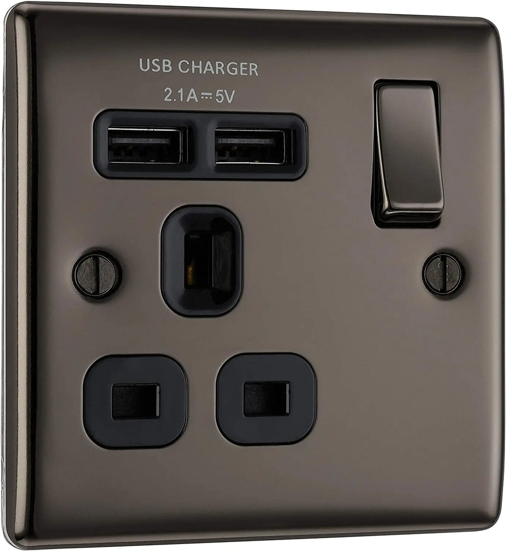 Modern and slim black nickel single switched power socket: from bg electrical, has softly rounded corners and colour matching fixing screws – combining quality with modern elegance trust in the smart USB feature: which standby once your device has fully charged and it can also auto-detect your USB device and adjust its charging pattern - making it suitable for iPhone and android appliances conveniently.