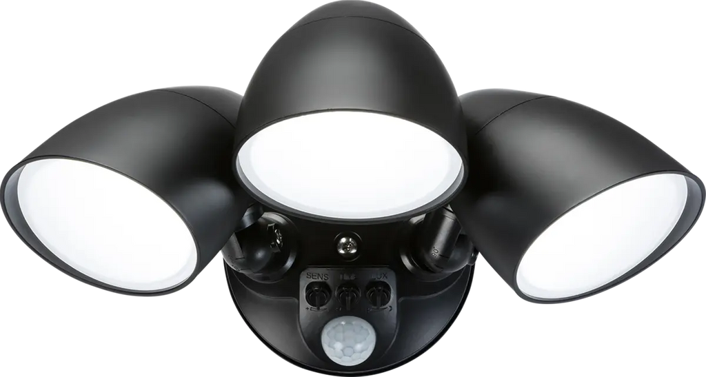Knightsbridge 110-230V IP65 Triple Head Black 30W Security Floodlight with PIR, Sensor,CCT and Manual Override – SL30CCTB