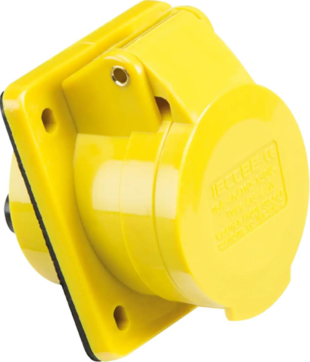Knightsbridge 110V IP44 16A Angled Panel Mount Socket 2P+E – IN004