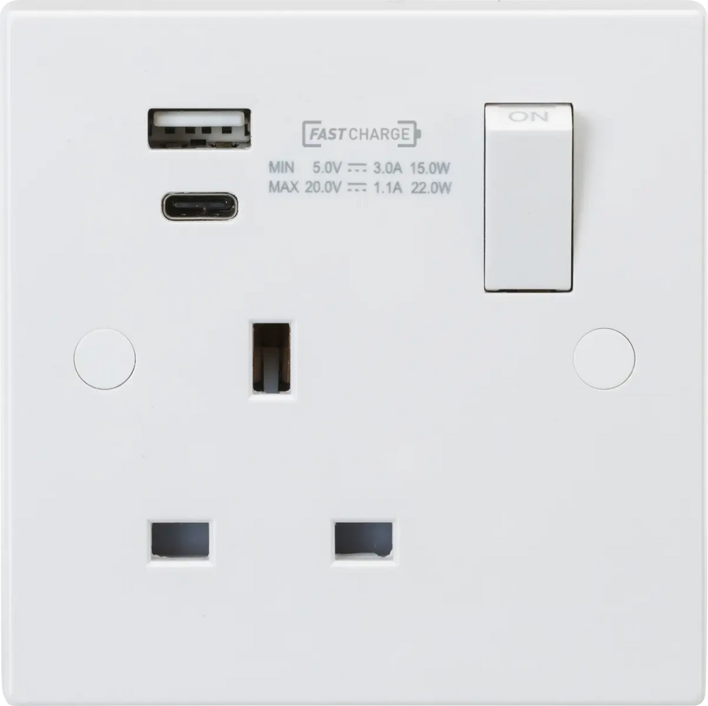 Knightsbridge 13A 1G DP Switched Socket with Dual USB A+C (20V DC 1.1A) Max. 22W – SN9919D
