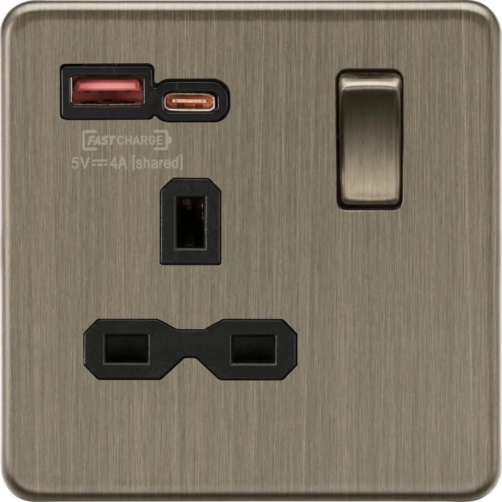 Knightsbridge 13A 1G Switched Socket with dual USB A+C [18W FASTCHARGE] - Antique Brass – SFR9919AB