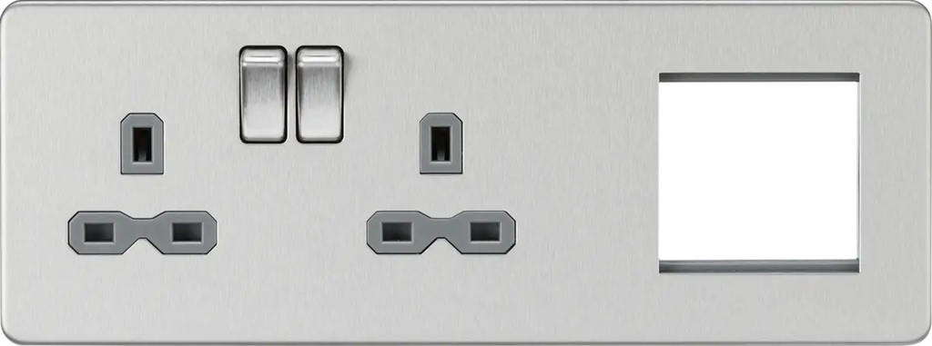 Knightsbridge 13A 2G DP Socket + 2G Modular Combination Plate - Brushed Chrome with Grey Insert – SFR192LBCG