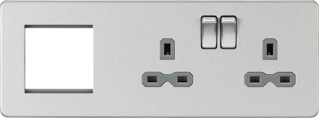 Knightsbridge 13A 2G DP Socket + 2G Modular Combination Plate - Brushed Chrome with Grey Insert – SFR192RBCG