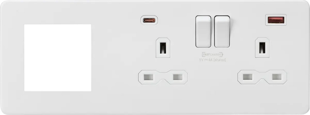 Knightsbridge 13A 2G DP Socket +2G Modular + Dual USB A+C 12V DC 1.5A (Max. 18W) - Matt White w/White Insert – SFR992RMW