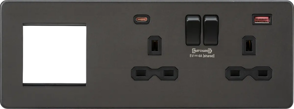 Knightsbridge 13A 2G DP Socket +2G Modular + Dual USB A+C 12V DC 1.5A (Max. 18W) - Smoked Bronze w/Black Insert – SFR992RSB