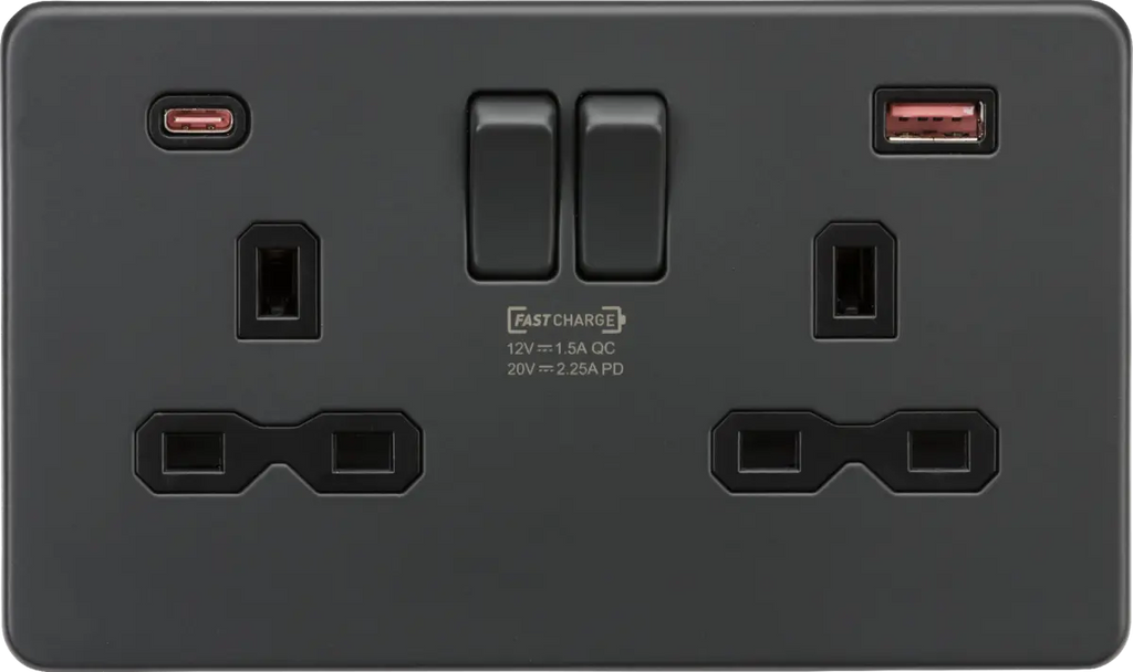 Knightsbridge 13A 2G DP Switched Socket with Dual USB A+C 20V DC 2.25A (Max. 45W) - Anthracite with Black Insert – SFR9945AT