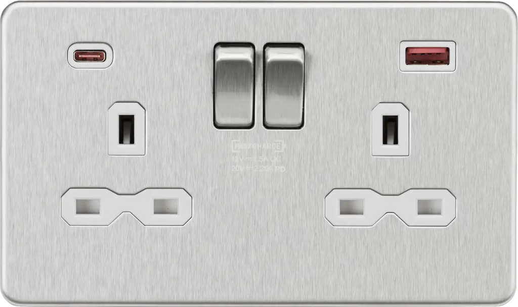 Knightsbridge 13A 2G DP Switched Socket with Dual USB A+C 20V DC 2.25A (Max. 45W) - Brushed Chrome w/White Insert – SFR9945BCW