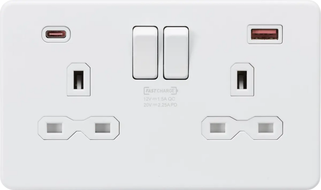 Knightsbridge 13A 2G DP Switched Socket with Dual USB A+C 20V DC 2.25A (Max. 45W) - Matt White with White Insert – SFR9945MW