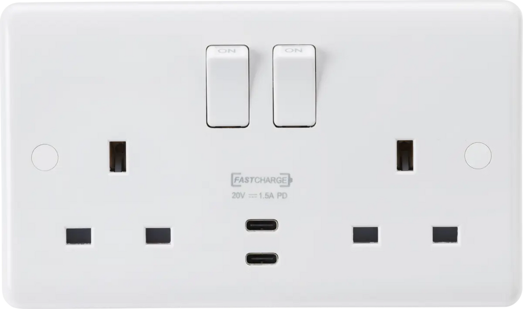 Knightsbridge 13A 2G DP Switched Socket with Dual USB-C 20V DC 1.5A (Max. 30W) – CU9930