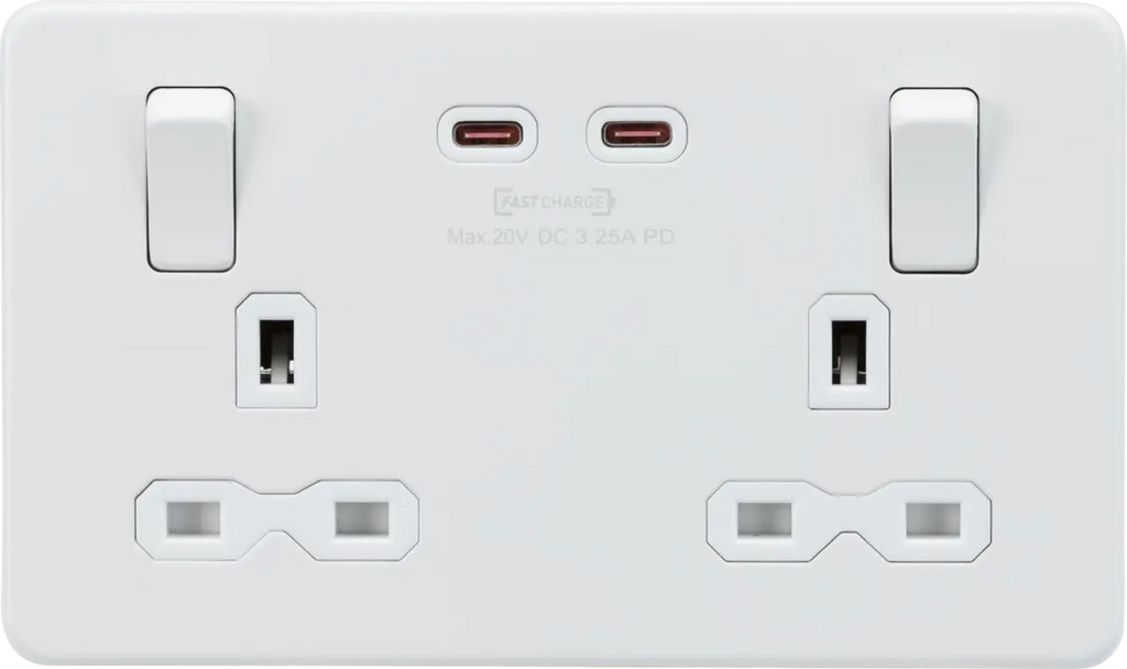 Knightsbridge 13A 2G DP Switched Socket with Dual USB-C [65W DUAL FASTCHARGE] - Matt White – SFR9965MW