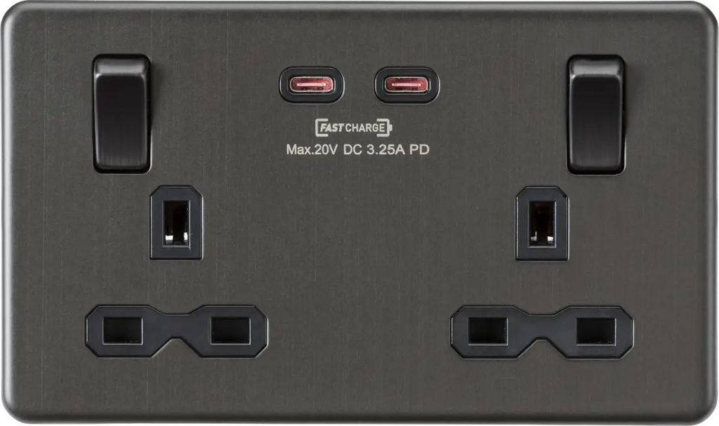 Knightsbridge 13A 2G DP Switched Socket with Dual USB-C [65W DUAL FASTCHARGE] - Smoked Bronze – SFR9965SB