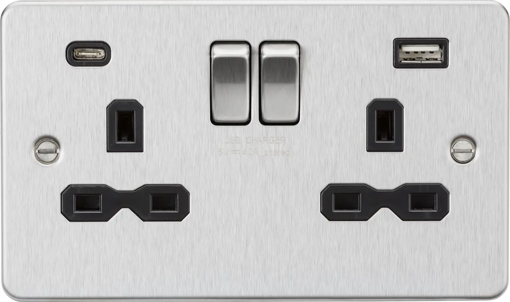 Knightsbridge 13A 2G SP Switched Socket with Dual USB A+C (5V DC 4.0A shared) - Brushed Chrome with Black Insert – FPR9940BC