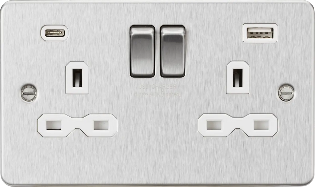 Knightsbridge 13A 2G SP Switched Socket with Dual USB A+C (5V DC 4.0A shared) - Brushed Chrome with White Insert – FPR9940BCW
