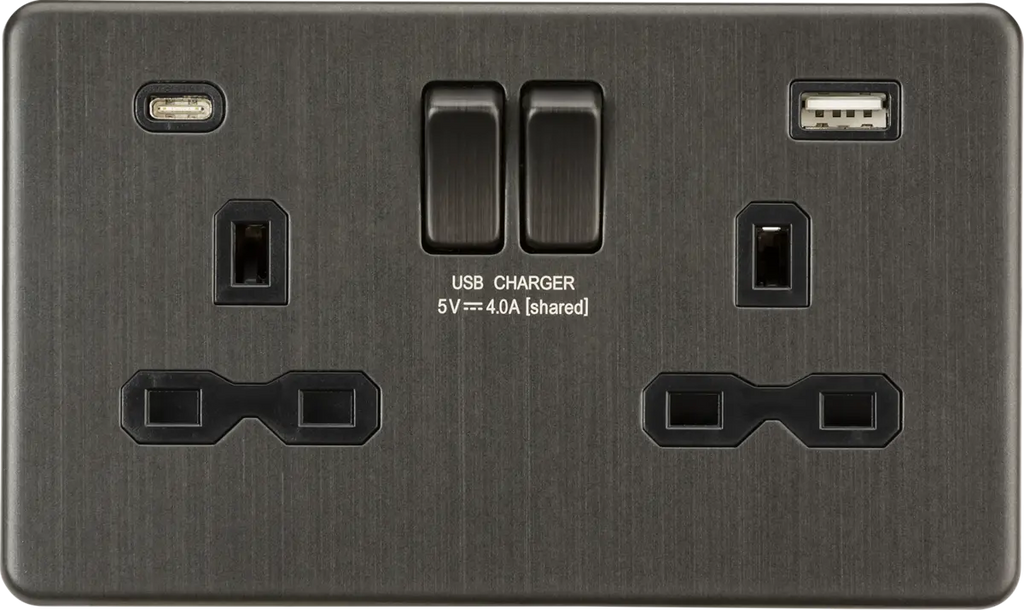 Knightsbridge 13A 2G SP Switched Socket with Dual USB A+C (5V DC 4.0A shared) - Smoked Bronze with Black Insert – SFR9940SB