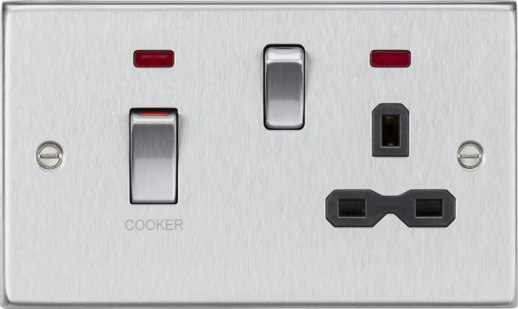 Knightsbridge 45A DP Switch & 13A Socket with Neons - Brushed Chrome with Black Insert – CS83MNBC