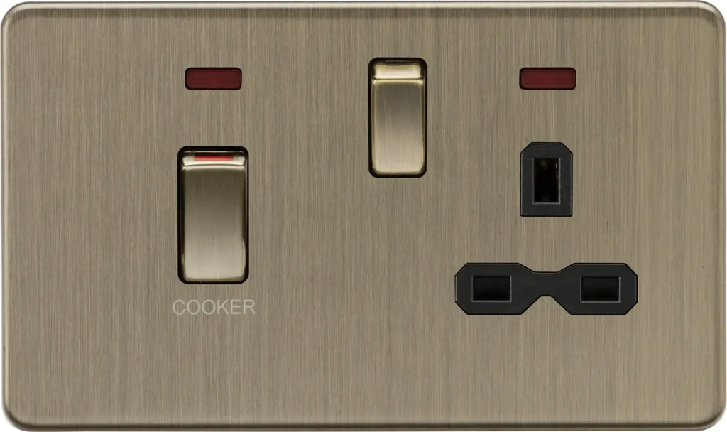 Knightsbridge 45A DP switch and 13A switched socket with neons - Antique Brass – SFR83MNAB