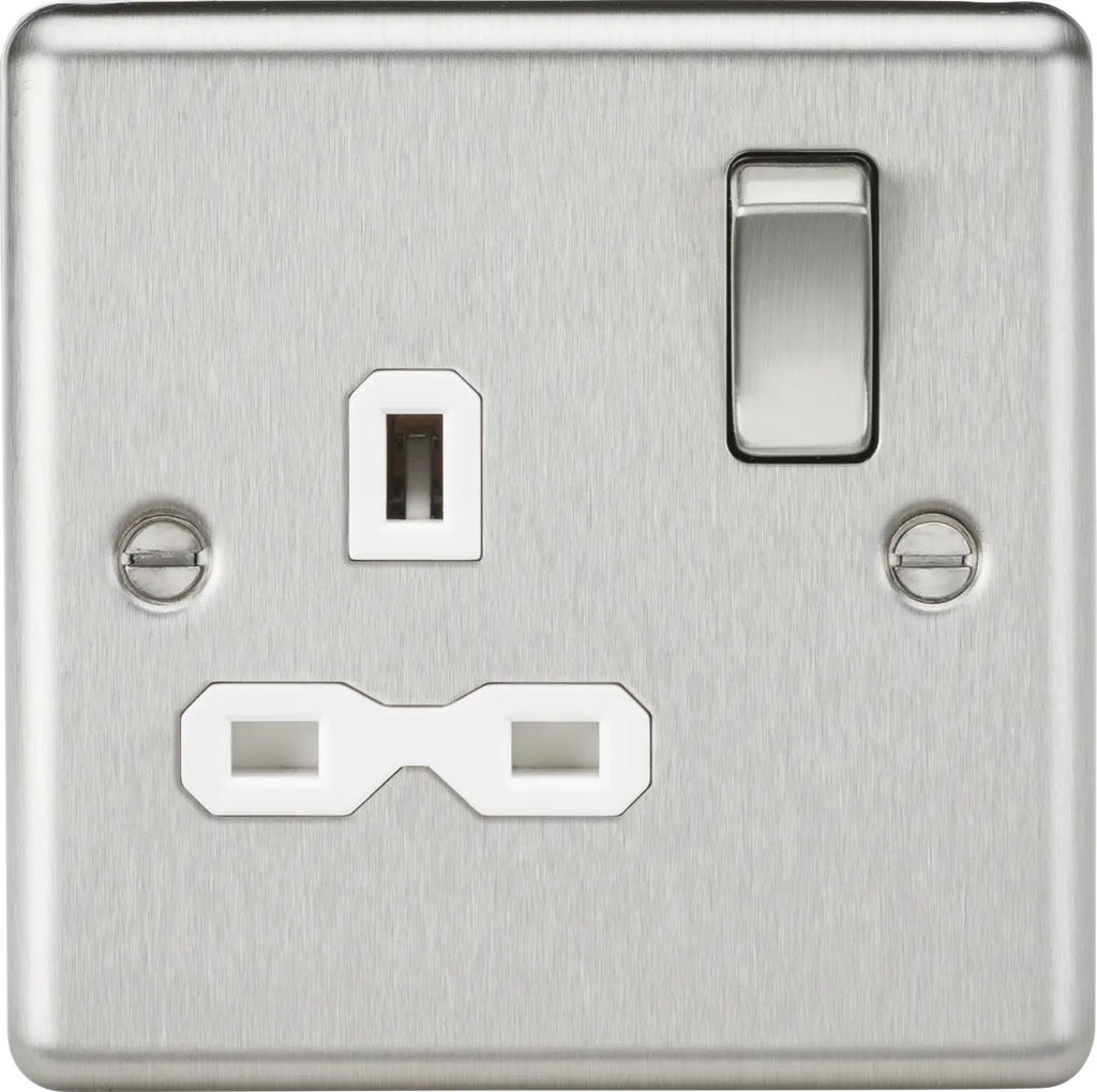 Knightsbridge Chrome 13A 1G DP Switched Socket - Brushed with White insert – CL7BCW