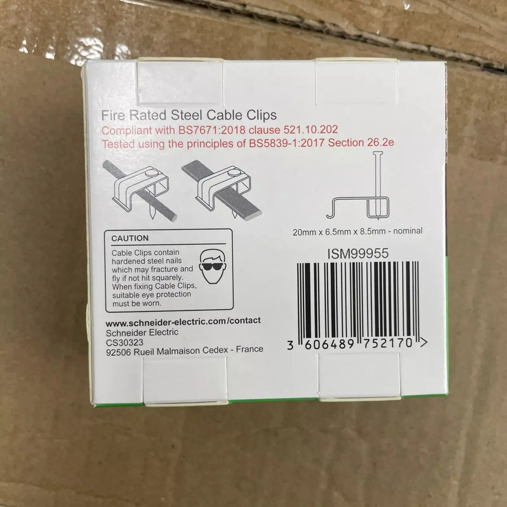 Schneider Thorsman 2.5mm Max Twin and Earth Fire Rated Steel Cable Clips 100 Pack